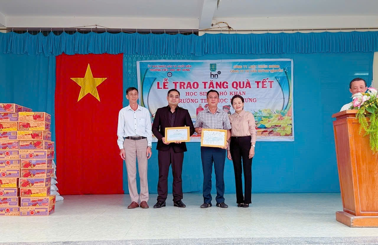 Tham dự buổi trao quà có Luật sư, Thạc sĩ Lê Kiên Lương - Giám đốc Công ty Luật Thiên Hương; Luật sư Huỳnh Bảo Long - Giám đốc Công ty Tư vấn Huỳnh Nguyễn, cùng tập thể Luật sư và nhân viên của hai công ty. Về phía địa phương và nhà trường có đại diện Ban Giám hiệu Trường Tiểu học Mỹ Hưng, bà Hồng Nhung - Phó chủ tịch UBND xã Quới Điền.