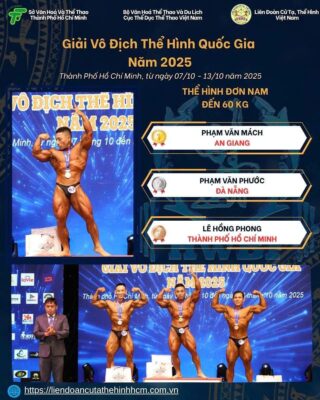 Giải vô địch Thể hình Quốc gia 2025 do Liên đoàn Thể hình và Fitness Việt Nam phối hợp với Sở Văn hóa và Thể thao TP.HCM tổ chức. Sự kiện kết thúc thành công tốt đẹp, mở ra kỳ vọng cho lực lượng thể hình Việt Nam trên đấu trường quốc tế trong thời gian tới.
